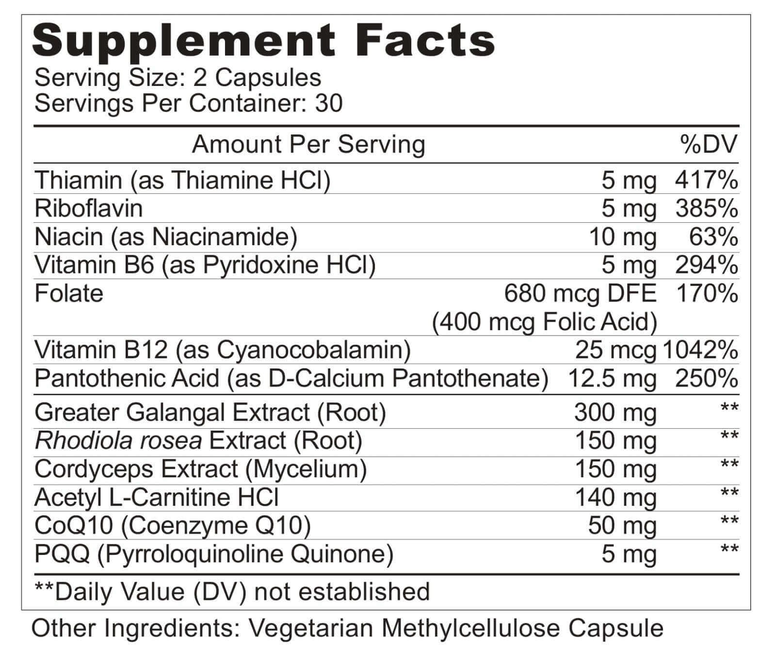- PQQ (a nutrient that helps create new mitochondria - the energy “generators” in our body)