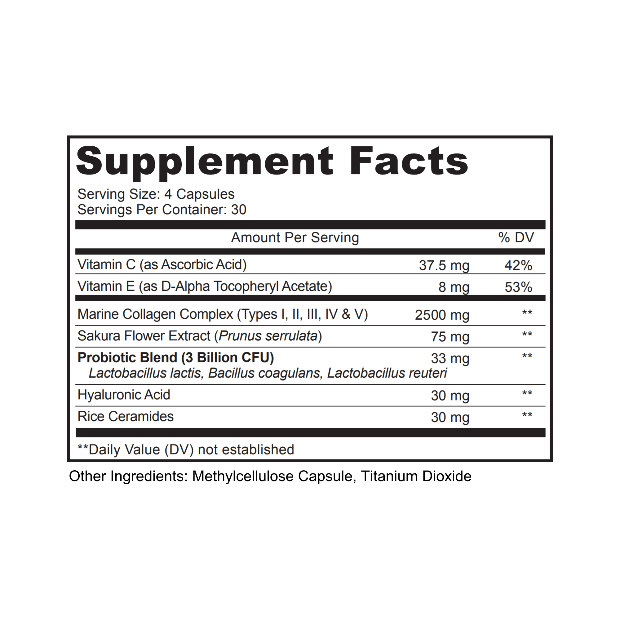 - Low-molecular-weight, Type I Marine Collagen (Most effective form of collagen)