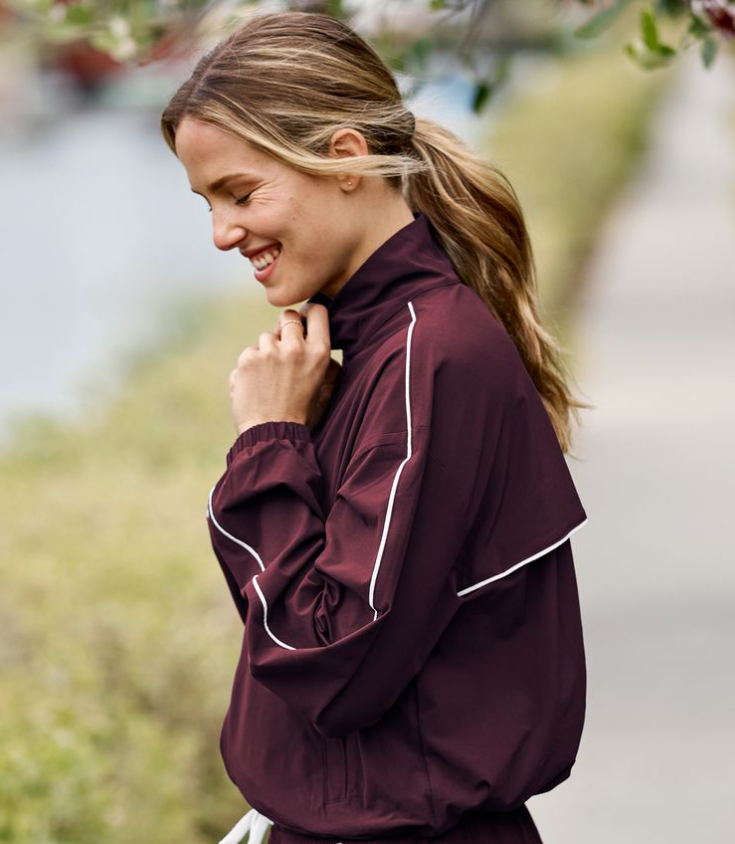 Say hi to our new Track Jacket - no running required. But if you are logging miles, the adjustable hem cinches the jacket to your body, and the lightweight, moisture-wicking material keeps UV rays off your skin.