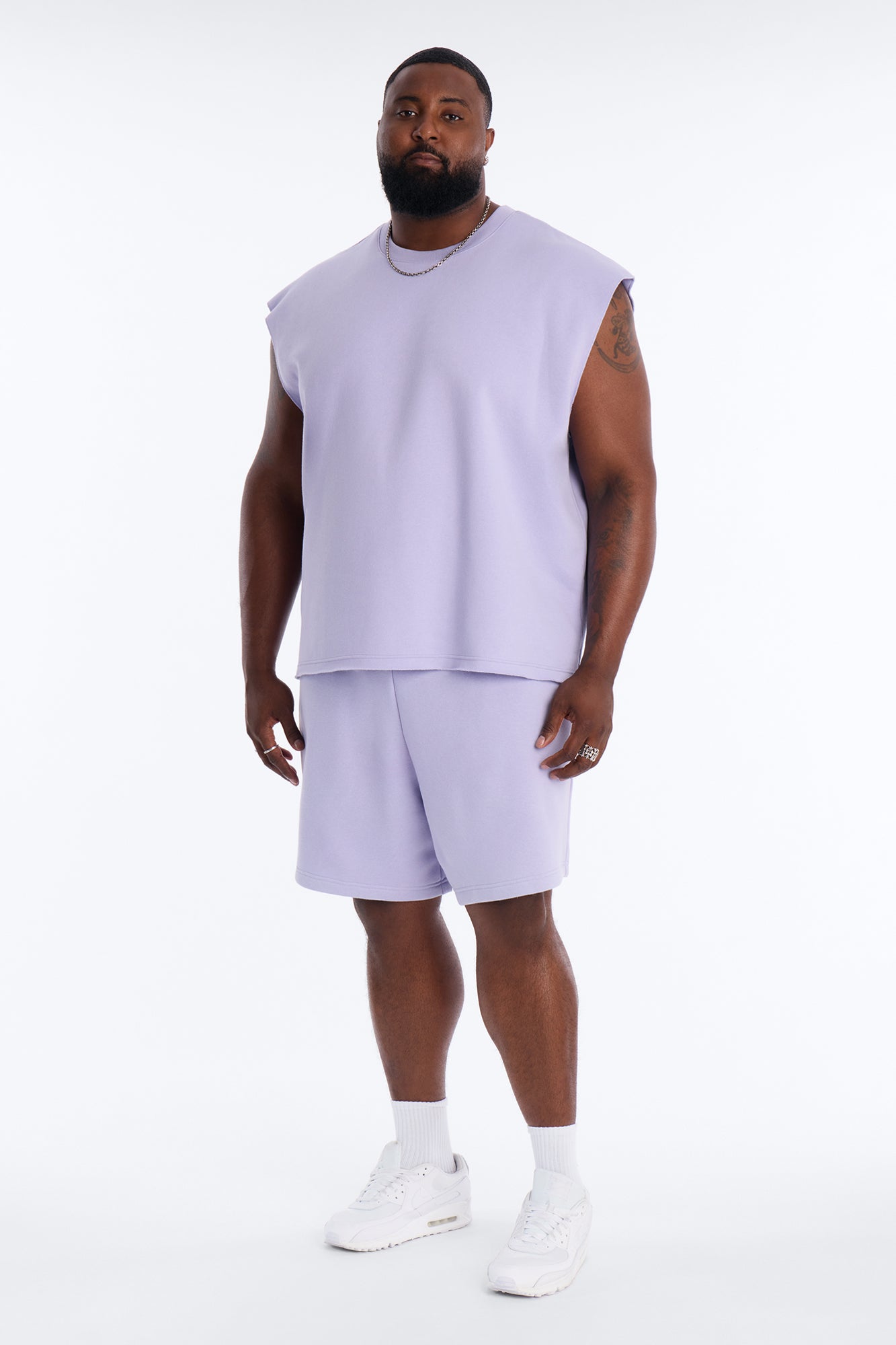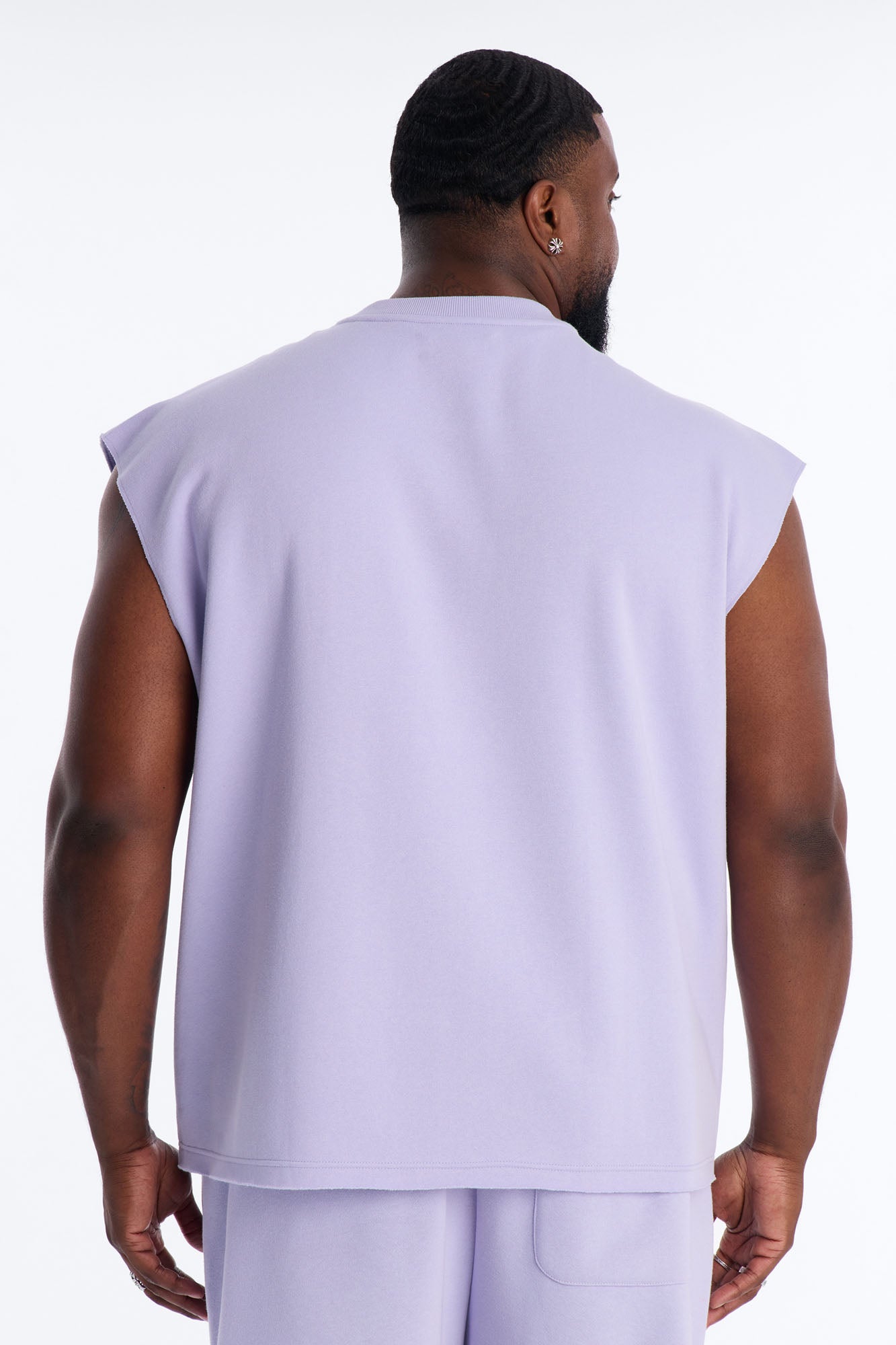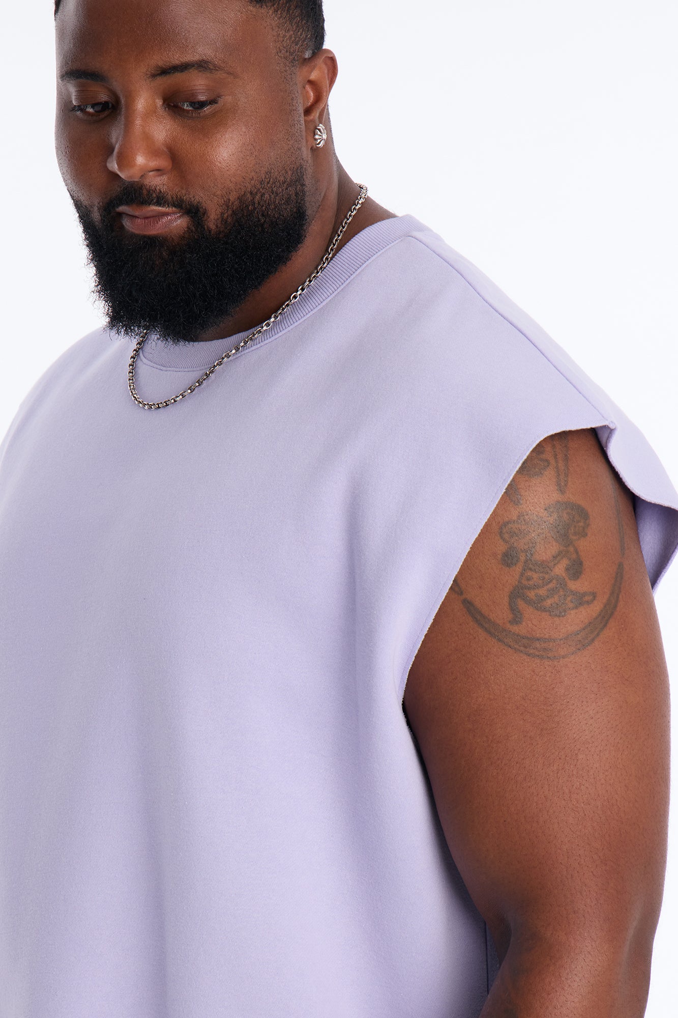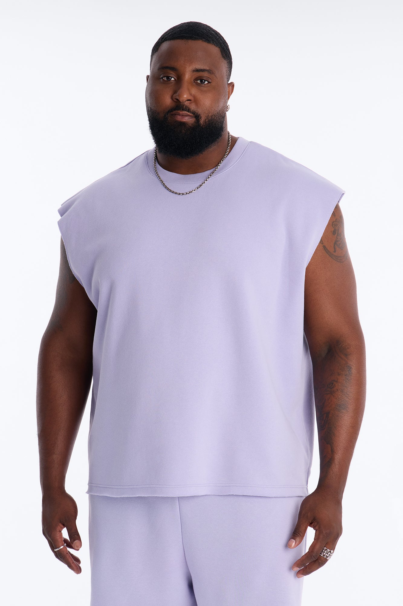 The Tyson Relaxed Muscle Tee - Lavender is available in the following options: S, M, L, XL, XXL, XXXL. Check the product page for current stock availability.