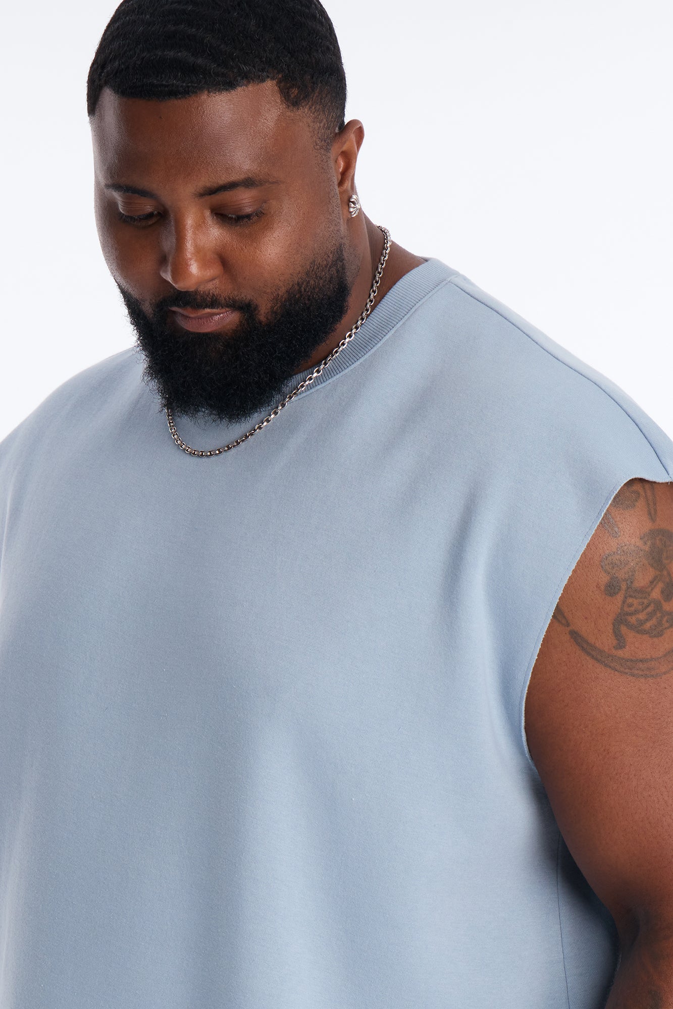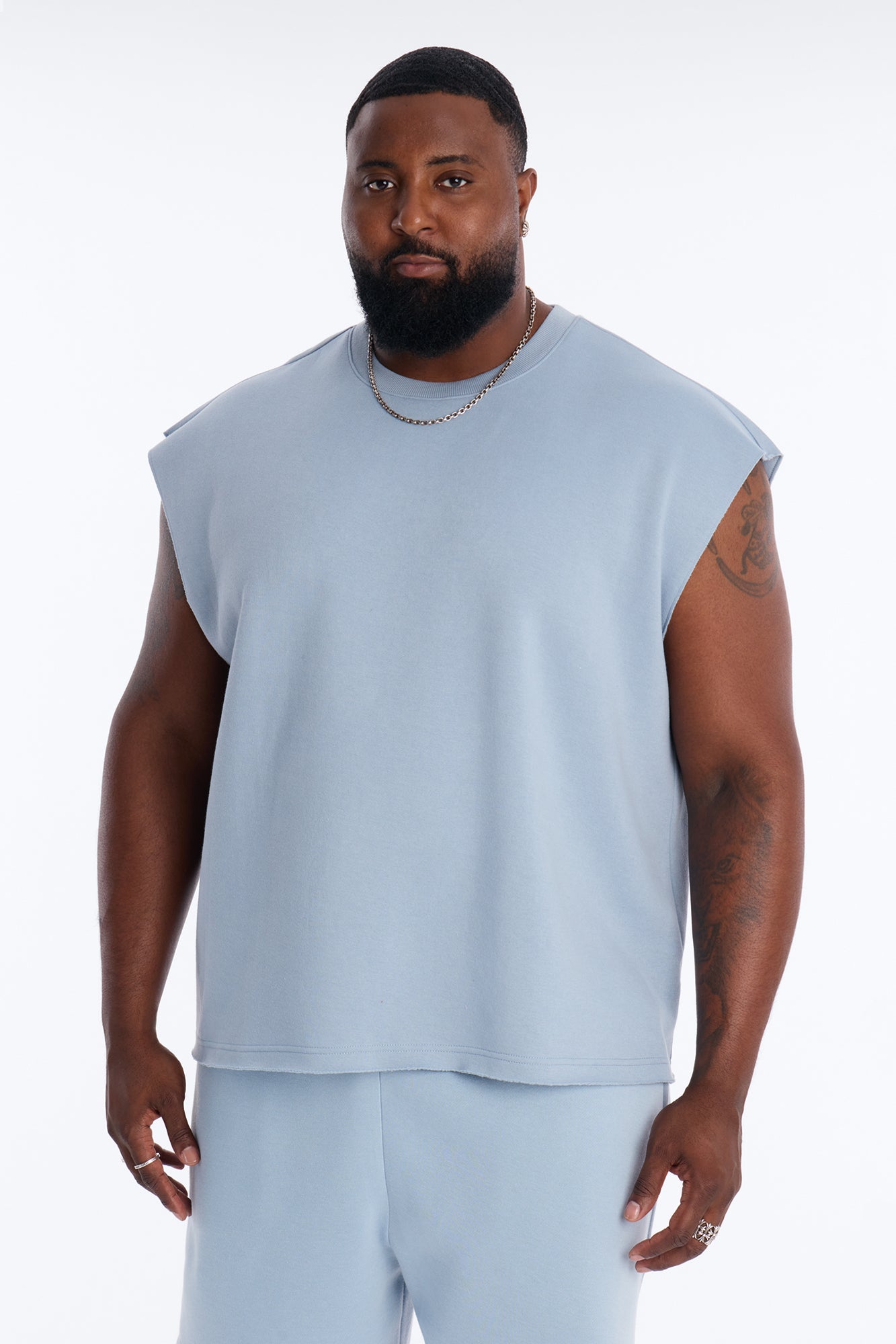 The Tyson Relaxed Muscle Tee - Slate Blue is available in the following options: S, M, L, XL, XXL, XXXL. Check the product page for current stock availability.