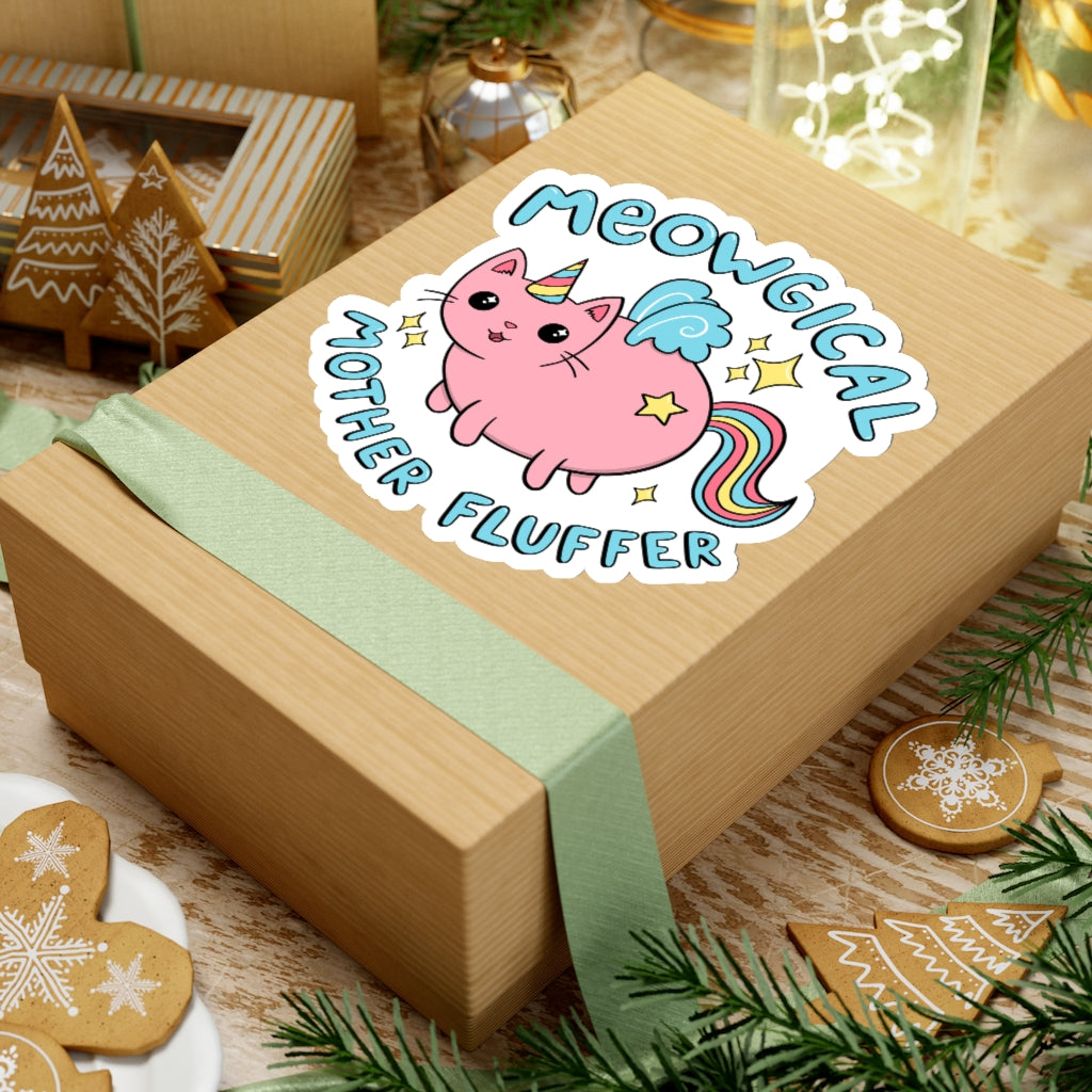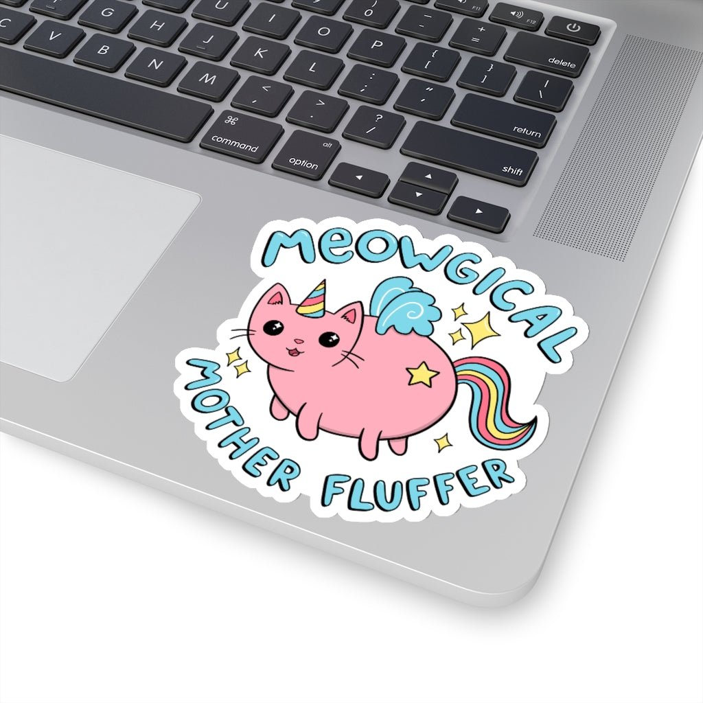 The Unicorn Cat Sticker is available in the following options: 3" × 3" / White, 4" × 4" / White, 6" × 6" / White. Check the product page for current stock availability.