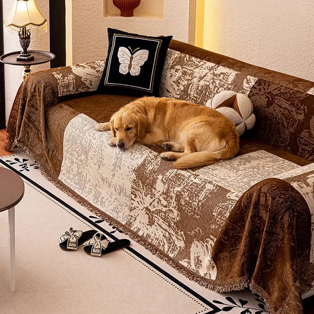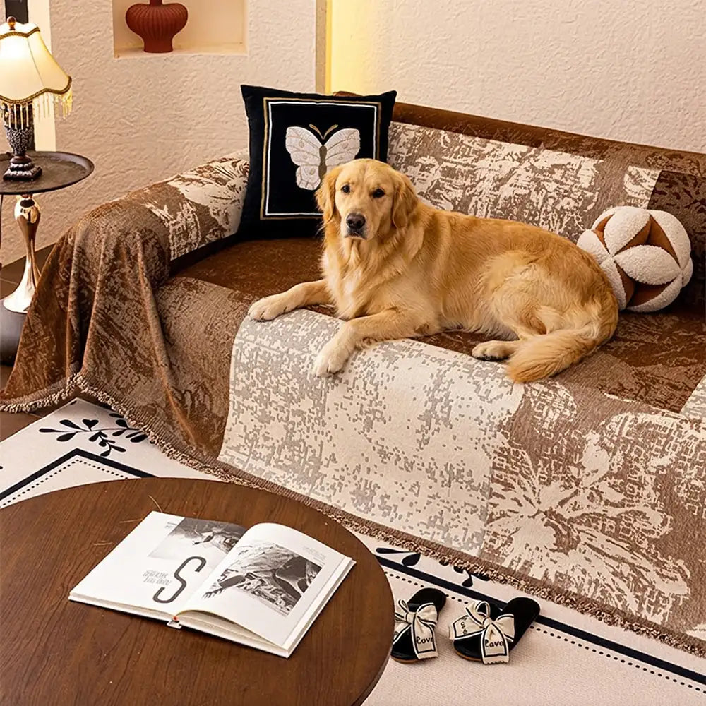 Bring timeless charm and everyday protection to your living space with the Vintage Botanical Jacquard Chenille Sofa Scratch-Resistant Couch Cover.