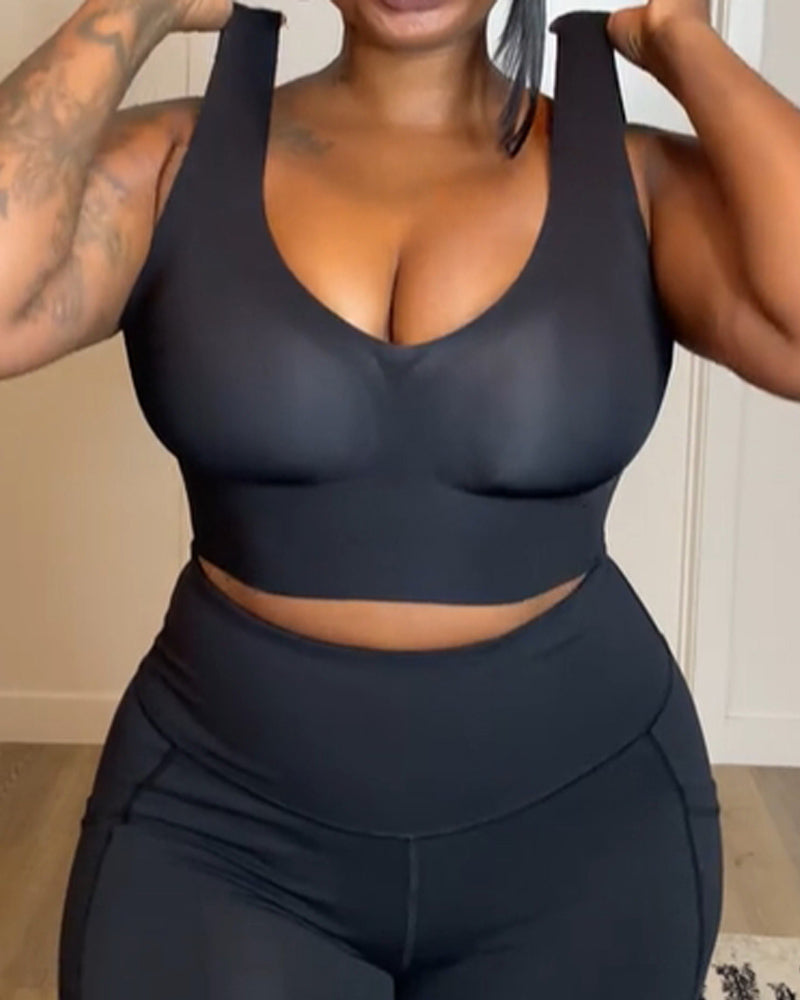 Wireless Seamless V-Neck Tank Plus Size Push Up Bra