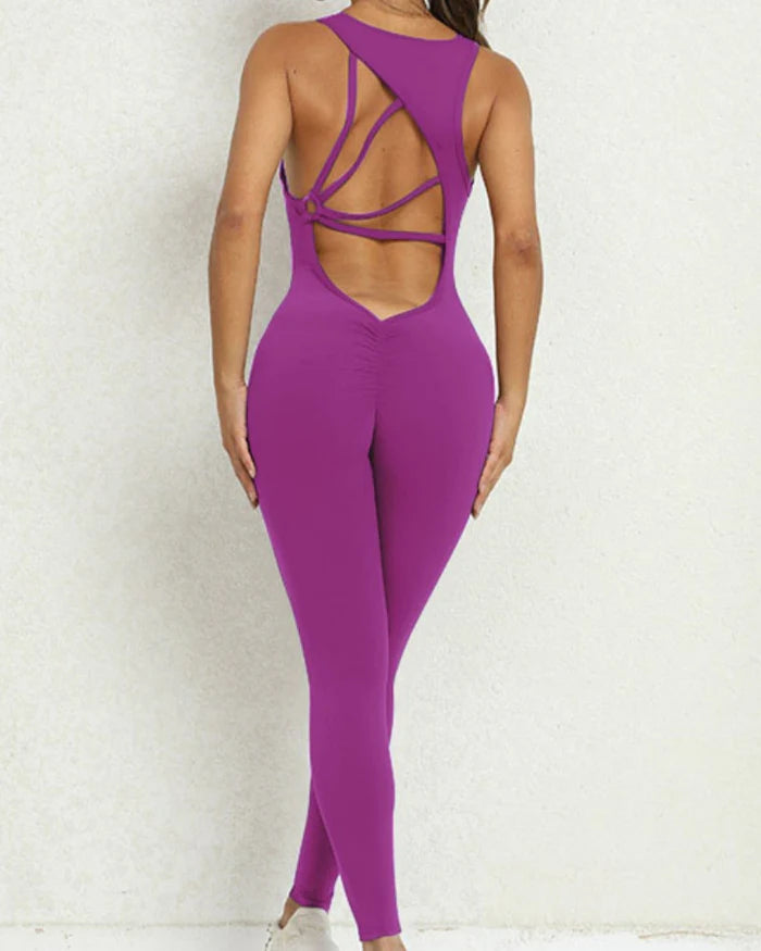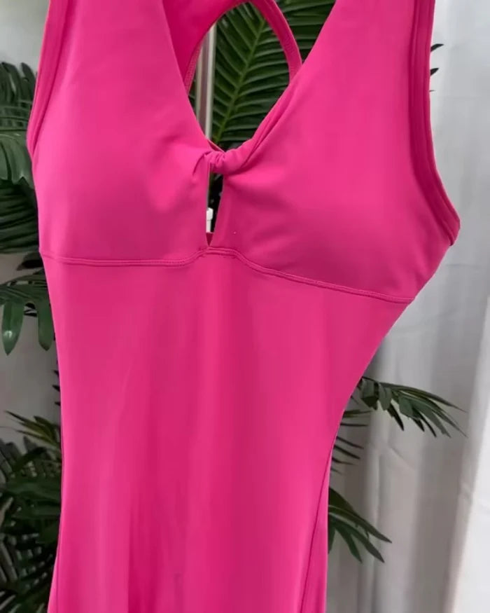 If you are looking for a jumpsuit that can show off your charming back line and perfect body shape, choose this one. Combining the sleeveless design with stretch fabric, you can show elegance and confidence in your wear!