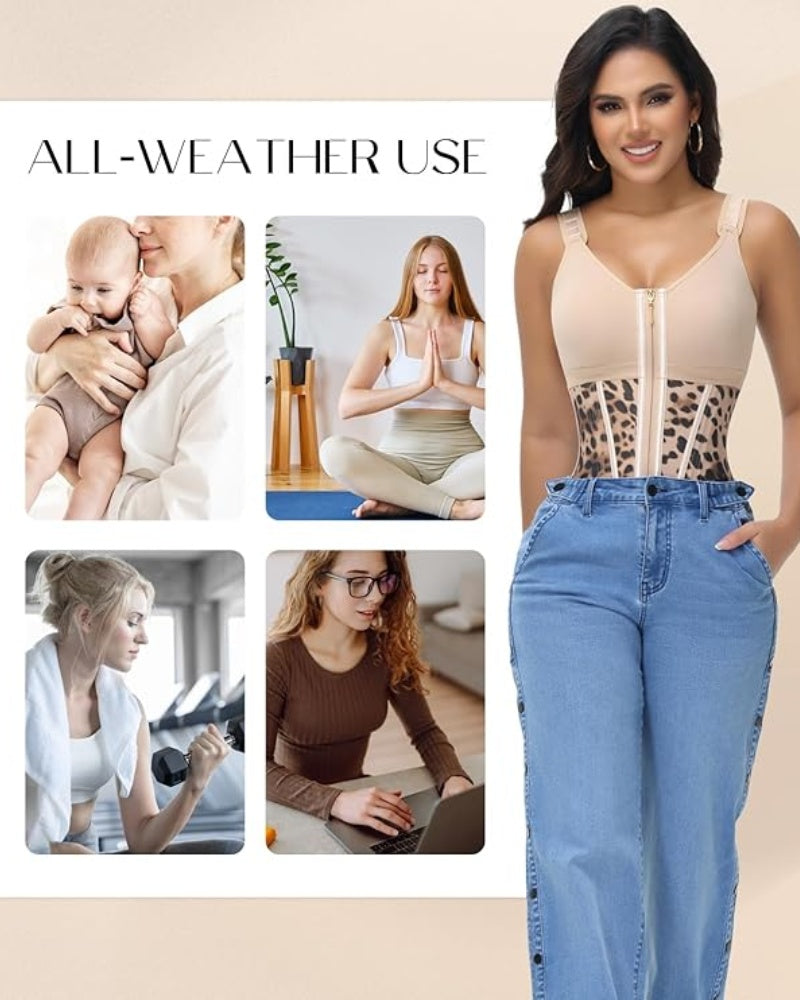This stylish corset features a boned structure that offers firm control for your waist and abdomen, helping you achieve a flattering hourglass figure. The convenient zipper closure allows for easy wear, while the built-in bra provides added lift and support. Made from high-quality latex, this vest ensures breathability and flexibility, making it perfect for daily wear or special occasions.