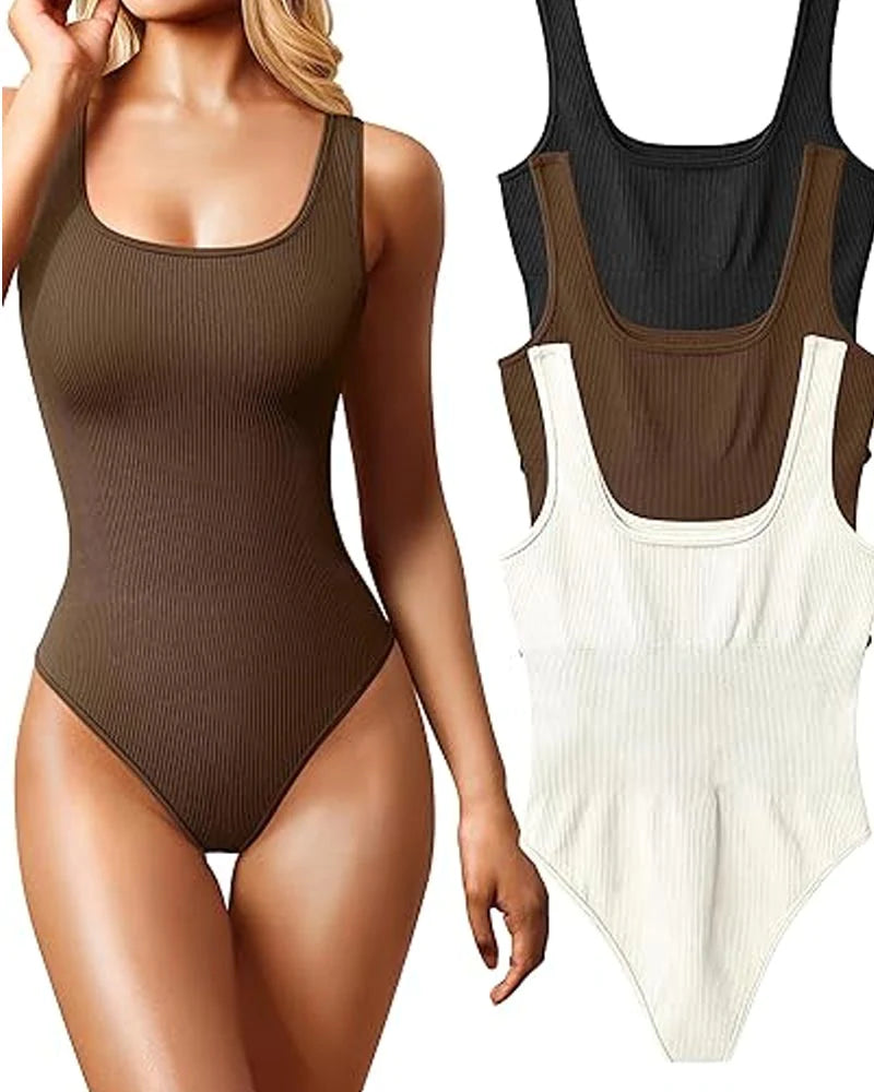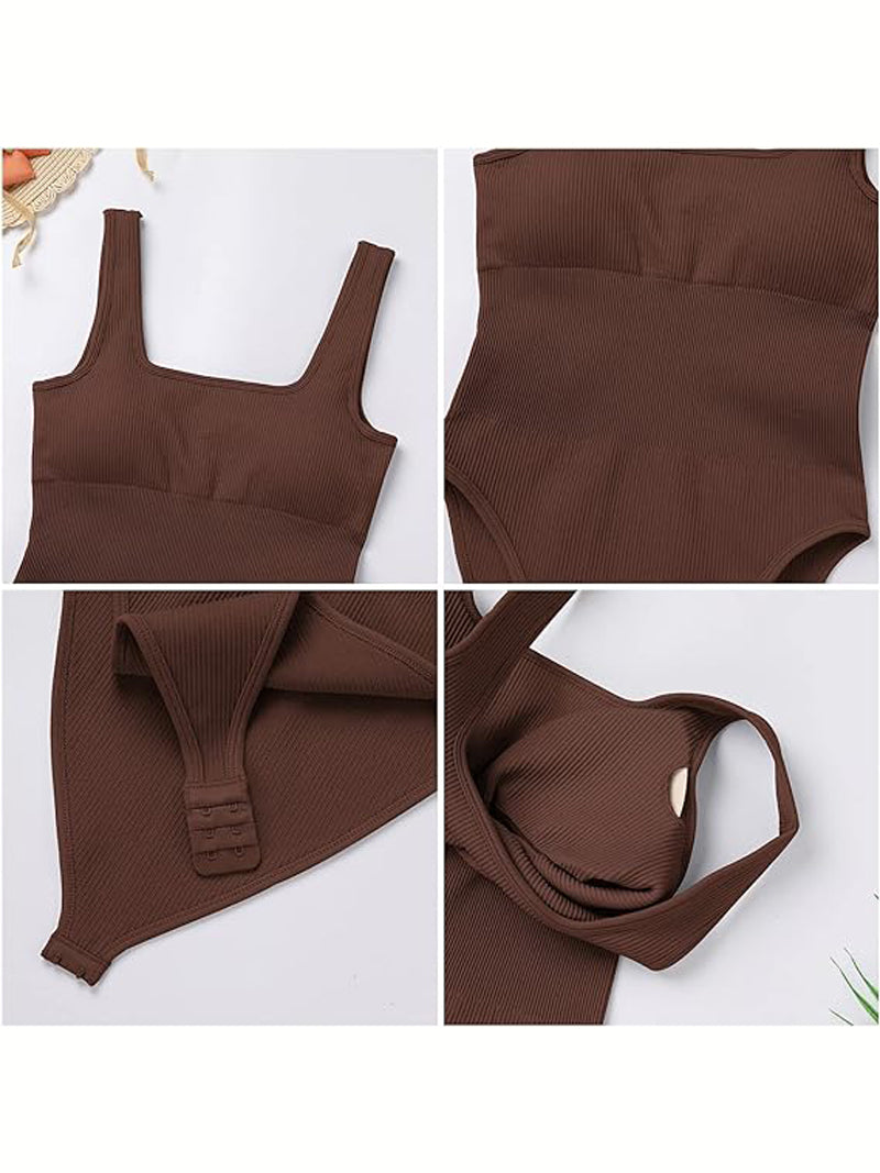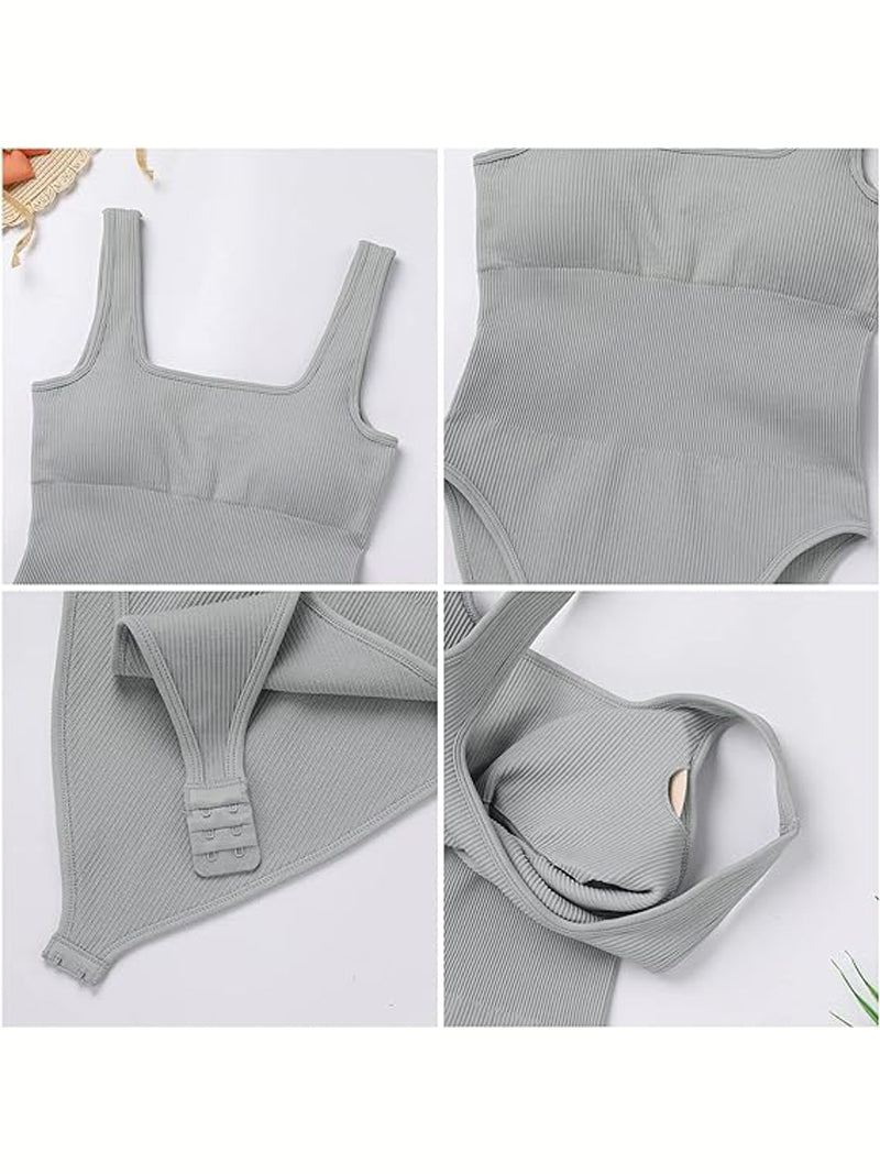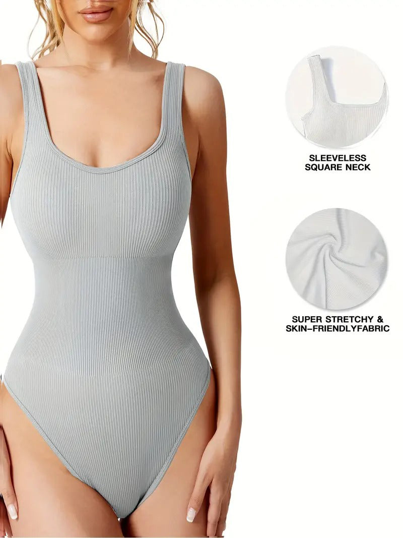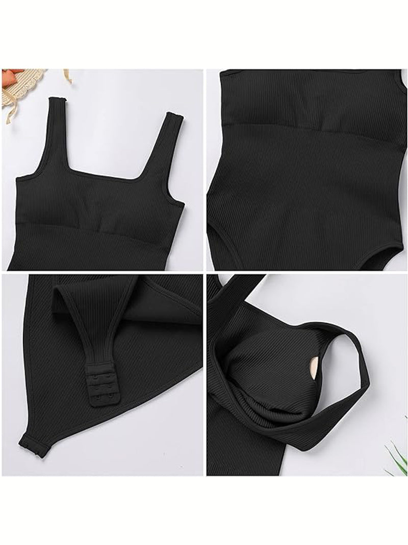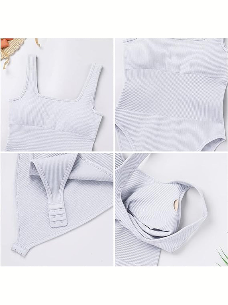Women's Shapewear Bodysuits Sexy Ribbed Sleeveless Square Neck Tank Tops
