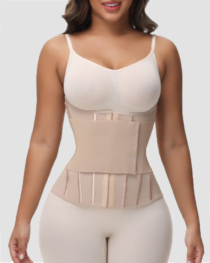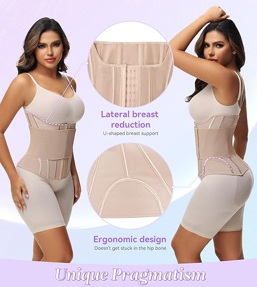 This Waist Trainer features a double tummy tuck design with adjustable layers, allowing for a customized fit that targets your waist and abdomen. With full lumbar support and a U-shape chest design, this waist cincher not only flattens your tummy but also accentuates your bust for a charming silhouette.